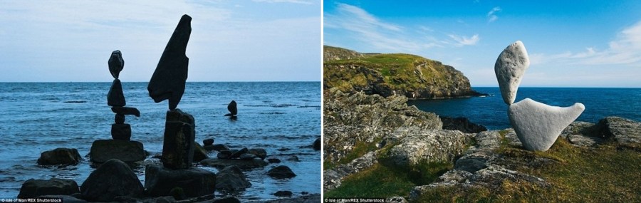 Adrian Gray được biết đến như một trong những nghệ sĩ hàng đầu thế giới về nghệ thuật sắp đặt. Mới đây, anh đã “trình làng” bộ ảnh về những hòn đá xếp chồng lên nhau bất chấp trọng lực tại bờ biển đảo Man, Anh Quốc nhằm tôn vinh vẻ đẹp của hòn đảo này. Trong bộ ảnh, những hòn đá trông như đang chồng lơ lửng lên nhau trong không trung. Để thực hiện bộ ảnh này, Adrian đã tiêu tốn hàng giờ đồng hồ dạo quanh khắp đảo để chọn ra những hòn đá, rửa sạch chúng và thực hiện tuyệt tác của mình.