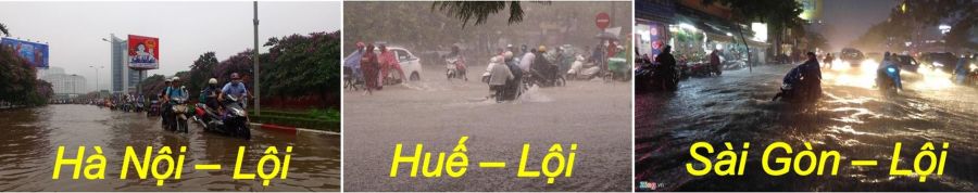 Không chỉ Hà Nội – Huế – Sài Gòn ngập lụt mà nhiều thành phố khác cũng đang chịu cảnh ngập lụt. Các thành phố nằm trên địa hình thấp – ngập, trên địa hình cao – ngập, năm ngoái không ngập, năm nay ngập, năm nay không ngập nhưng có thể sang năm ngập.