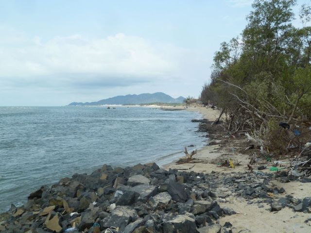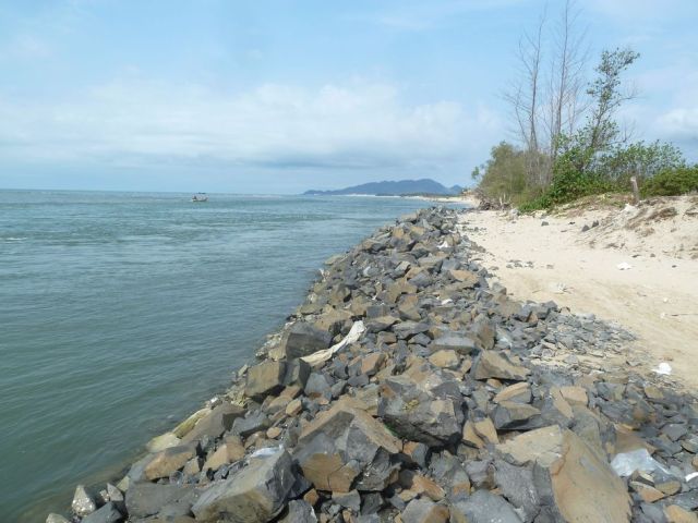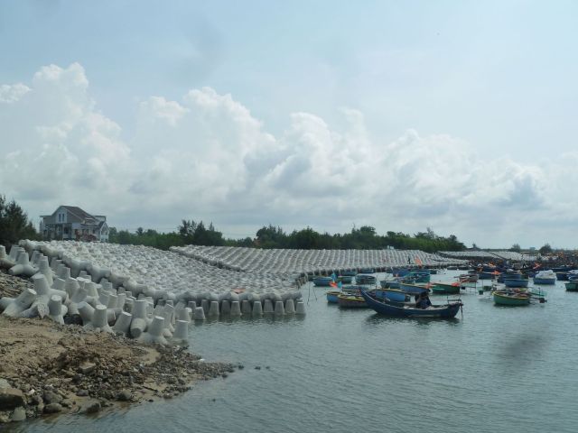 Trước khi xem những hình ảnh ngày 23.04.2017 tại cửa Lộc An, hãy đọc đoạn trích dẫn dưới đây từ bài: Công trình chống xói lở bờ biển Lộc An: Nhà thầu nước ngoài lỗi hẹn: