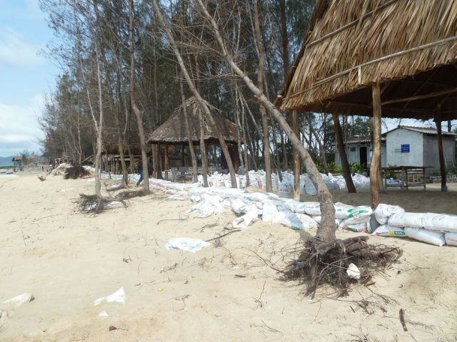 Một đoạn bờ kè kiên cố đang được triển khai. Doi cát phía đông cửa Lộc An tiếp tục phát triển về phía tây nam. Các khối đá chắn tạm đoạn bờ tây xói lở được kéo dài thêm khi các stabiplage không còn tác dụng. Xói lở bờ tiếp tục dịch dần về phía tây, lấn sâu vào đất liền.