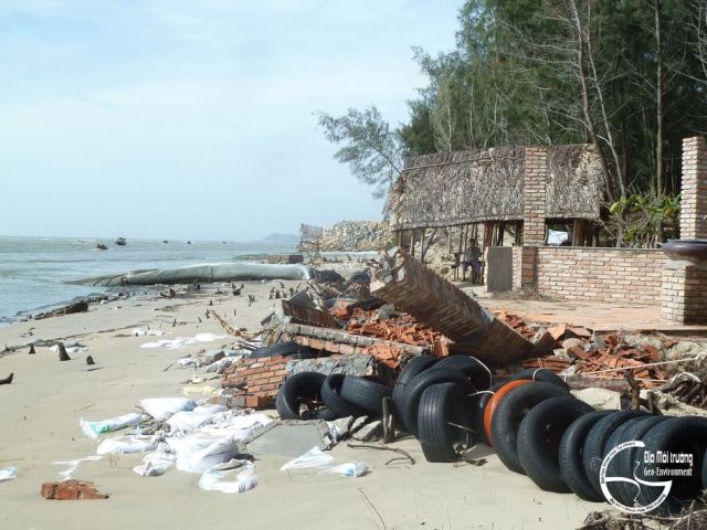 Xói lở trong khoảng 6 tháng qua (từ tháng tư đến nay) tiếp tục phá hủy khu du lịch khi những bao cát yếu ớt không thể chống lại sóng biển.