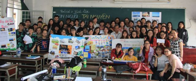 Sáng ngày 15.01.2018, Báo cáo và Triển lãm Con người – Tài nguyên – Môi trường đới bờ của sinh viên khóa 2014 thuộc ba chuyên ngành: Tài nguyên TN và MT; Môi trường và Tài nguyên biển; Khoa học Môi trường đã diễn ra tại phòng E 22, cơ sở Nguyễn Văn Cừ. Năm nay thời gian chuẩn bị báo cáo kéo dài hơn so với những năm trước, các nhóm đầu tư nhiều công sức cho báo cáo chuyên đề cũng như các sản phẩm triển lãm.