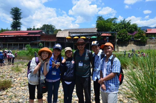 Năm ngoái cũng vậy, cơm trưa xong, thày trò lại hành quân xuống Bến Lội nhưng chuẩn bị theo bậc thềm xuống bãi thì bị chủ quán làm khó – nguyên nhân có lẽ là đoàn đặt ăn ở quán Chân Đèo. Trưởng đoàn nói gì đó, rồi chủ quán cũng cho qua. (Thực ra thì đoàn đã liên hệ đặt ăn tại quán Bến Lội rồi, nhưng mắc nên thôi).