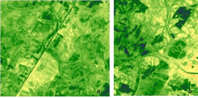 Xử lý hình ảnh: dấu vết lòng sông cổ trên ảnh Landsat được xử lý bằng cách tăng cường chất lượng hình ảnh như: tổ hợp màu nâng cao chất lượng (Hình 6) hoặc xử lý kênh nhiệt (Hình 7).