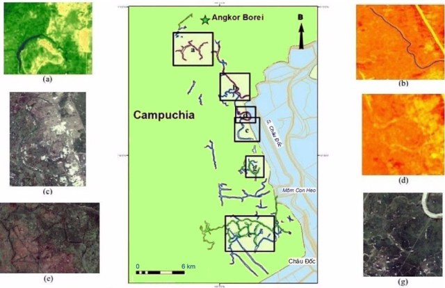 Kết quả giải đoán và xử lý hình ảnh là cơ sở thành lập bản đồ phân bố lòng sông cổ. Dựa vào đặc điểm hình thái mạng sông cổ và khu vực phân bố, hai bản đồ dấu vết lòng sông cổ khu vực phân tích được thành lập là Nam Angkor Borei và An Giang – Kiên Giang.