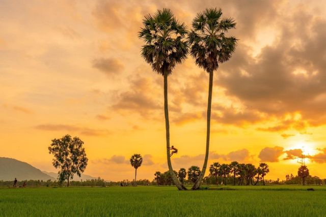 Người dân Tịnh Biên không chỉ kiếm được tiền từ thu hoạch trái thốt nốt mà còn tăng thu nhập nhờ việc làm mẫu cho các nhiếp ảnh gia chụp ảnh.