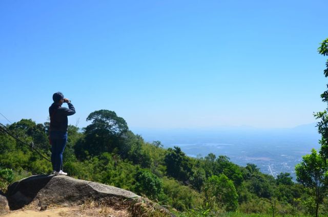 – Tuyến đường mòn cắt qua núi, nhưng phần lớn là đi dưới nắng do cây cối thưa thớt, cây rừng lớn gần như không còn, thay vào đó là những loại cây trồng như điều, keo, mít. Đường mòn qua nhiều đoạn là lồ ô, lau sây và cỏ tranh, thỉnh thoảng mới có những lùm cây tạo bóng dâm để dân phượt và du khách dừng chân nghỉ.
