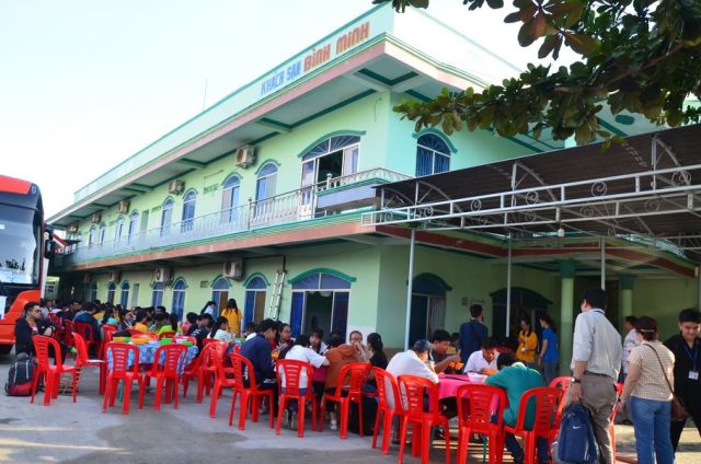 Năm ngoái đổi điểm thực tập mới từ Đầm Môn (Vân Phong, Nha Trang) về vườn QG Núi Chúa, thuê ăn, ở tại khách sạn Bình Minh (Ninh Hải, Ninh Thuận) thấy ổn. Năm nay làm việc với với quản lý (vẫn là chị năm ngoái), chốt ăn nghỉ từ tháng năm. Ấy vậy chỉ còn hai ngày trước khi đoàn đến, quản lý báo tăng giá ăn, nếu không phải ăn sáng nơi khác, ăn chiều nơi khác. Thế là phải thuê cơ sở khác nấu và chuyển đến và phải trả tiền gọi là thuê mặt bằng để bàn ăn.