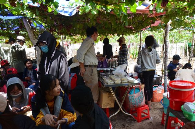 Rời quán Ngọc Nga nơi mà thày Thành, cô Liên (lơ xe của tài xế Lợi) mua được mỗi người một túi, một hộp rong biển giá 150.000 đ và 50.000 đ, đoàn chia làm hai thăm quan vườn nho (vì vườn quá bé). Tại vườn nho bà Hiền, mọi người hái nho,mua rượu nho, mật nho, táo sấy, rong biển…Thày Tự Thành công nhận ở đây bán rẻ, hai bánh dầy hơn giá 120.000 đ, hộp giá 40.000 đ.