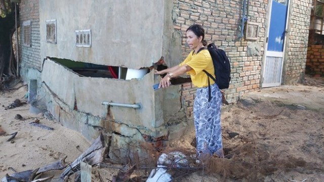 “Nhà đất chúng tôi có giấy tờ hẳn hoi, nằm cách bờ biển 50m, thế nhưng giờ đây căn nhà tôi đang sử dụng tự nhiên nằm gọn trên bãi biển, thử hỏi chúng tôi phải sống làm sao”, bà Thuý chia sẻ.