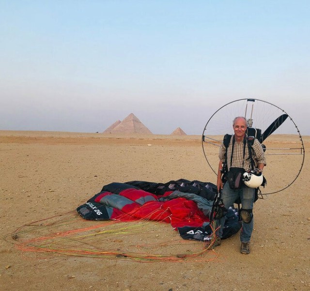 “Ban đầu tôi tìm hiểu về dù lượn vì muốn bay ở Sahara, và đó là nơi gần như tôi có thể cất cánh hay hạ cánh ở bất kỳ đâu, vì nó là một địa hình khá an toàn để dùng một phương tiện gắn mô-tơ không đáng tin cậy”, George nói.