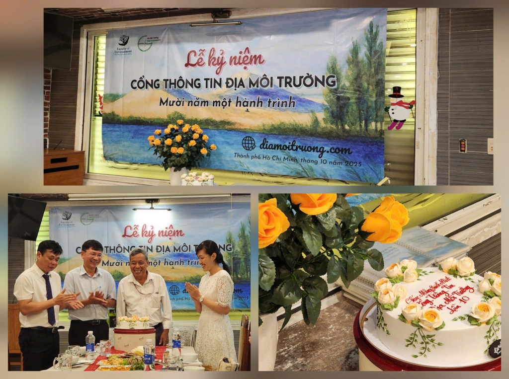 Ngày 19/10 vừa qua, tại Nhà hàng 241, chương trình kỷ niệm “Cổng Thông tin Địa Môi trường – 10 năm một hành trình” đã diễn ra trong không khí ấm cúng và trang trọng, với sự tham dự của Ban Chủ nhiệm Khoa, các Trưởng Bộ môn, cùng các thầy cô, cộng tác viên và những người đã đồng hành cùng trang trong suốt thời gian qua.