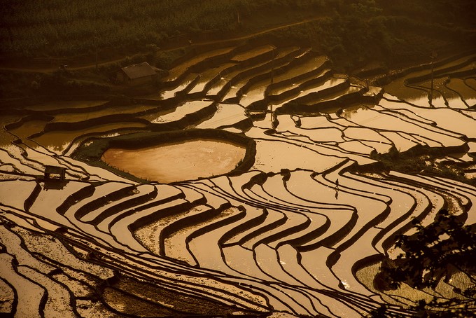 Con đường băng qua cánh đồng vô cùng nên thơ. Xa xa là những luống ngô đã thu hoạch xong, điểm xuyến cùng đồng hoa xuyến chi reo mình trong gió. Trên đường đi, chúng tôi cũng được ngắm núi lửa mẹ Nâm B’lang có tuổi Pleisstocen giữa (trẻ nhất là 199 nghìn năm và cổ nhất là 689 nghìn năm).
