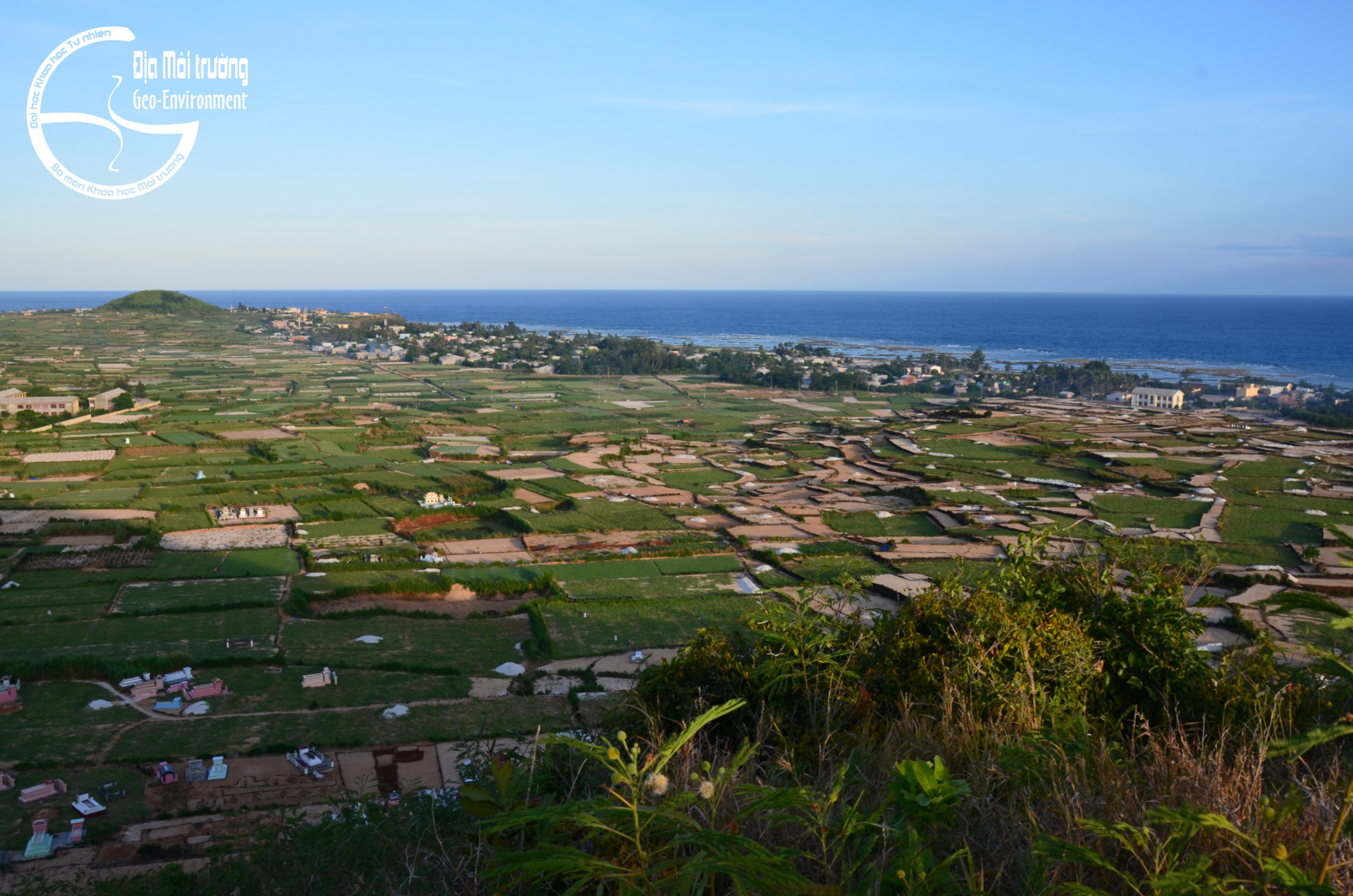 – Bãi biển mài mòn – tích tụ hiện đại: Ở phần thấp, sóng biển phá phần lớn các lớp đá bazan dòng chảy tới các lớp cát kết san hô. Ở phần cao, tích tụ phân bố sát chân bậc thềm 1, thành phần chủ yếu là cát, vụn san hô, mảnh khối bazan và cát kết tuf.