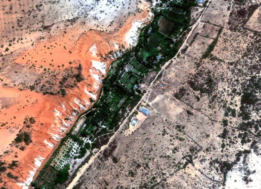 Lội bộ từ cửa suối đến thác nước, du khách sẽ thật sự thú vị khi thấy ranh giới rõ ràng giữa hai hệ tầng (cát đỏ phủ trên cát trắng), sự xuất hiện các bậc thềm suối, các tháp cát giả karst (Hình 2), các delta (Hình 3), các vết trượt, các hàm ếch và cuối lộ trình là thác nước với hố xoáy chân thác.